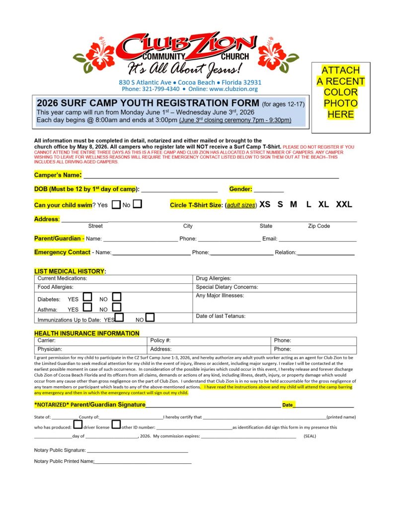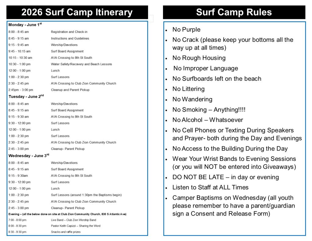 Club Zion Community Church Surf Camp 2026